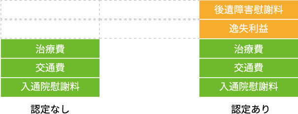 弁護士に依頼した場合、後遺障害を認定してもらえる可能性が高まります。治療終了時に重たい症状が残り、事故による後遺障害だと認定してもらえば、後遺障害による損害賠償(後遺障害慰謝料や逸失利益)を請求できます。